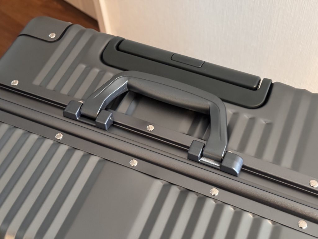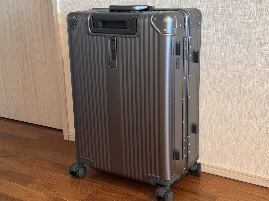 ポリカーボネートなど一般的な素材の同サイズのスーツケースに比べ、アルミ製で丈夫な分、少し重たいのが特徴的です。